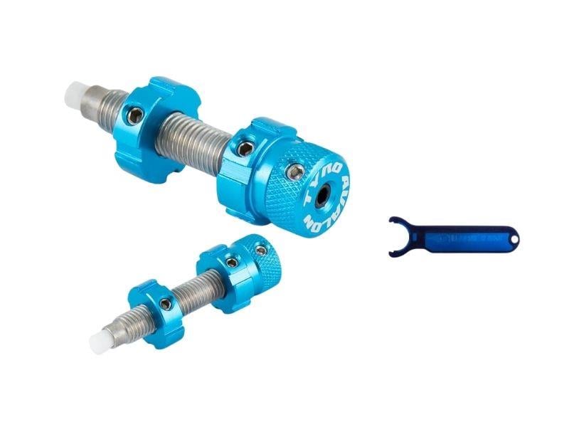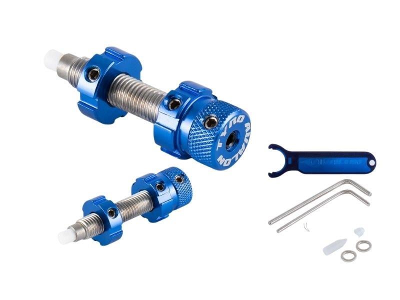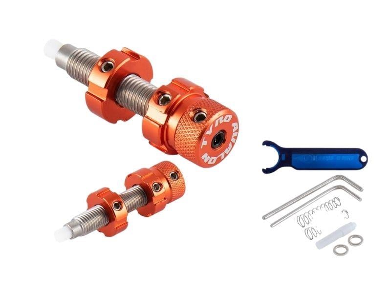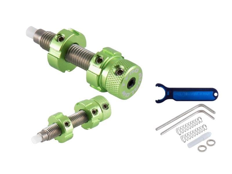 Özellikler: Uzunluk: 32 mm. Farklı piston yayları, yedek pim, allen anahtarı ve piston anahtarı dahil. 8 farklı anodize renkte mevcuttur.